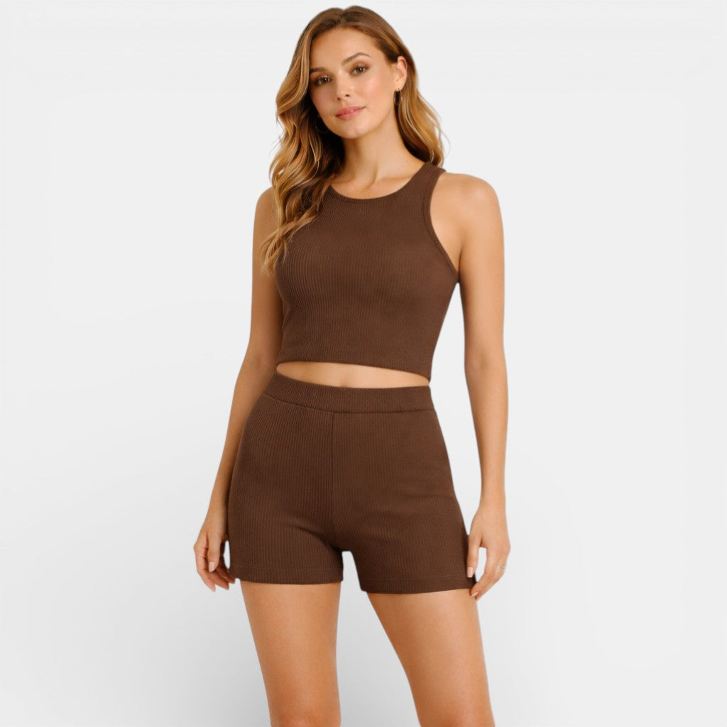 Noelle | Dame Tætsiddende Top & Shorts Sæt